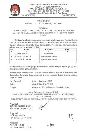 Pengumuman Peserta yang Dinyatakan Lulus Seleksi Wawancara Pegawai Pemerintah Non Pegawai Negeri Tahun 2022