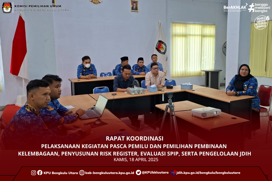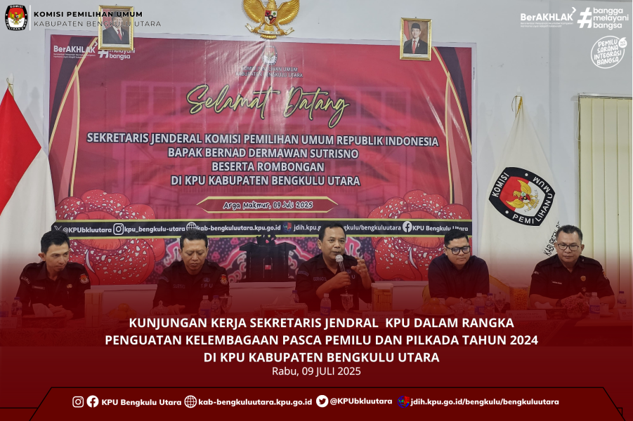Rapat pleno ini dipimpin oleh Ketua KPU Kabupaten Bengkulu Utara Santoso, S.Pd. dan didampingi oleh seluruh Anggota KPU Kabupaten Bengkulu Utara beserta jajaran. Rapat pleno ini juga dipandu oleh Anggota KPU Kabupaten Bengkulu Utara Divisi Perencanaan Data dan Informasi Apro Gandi S.Pd yang menjabarkan hasil dari penyusunan PDPB pada Triwulan II.